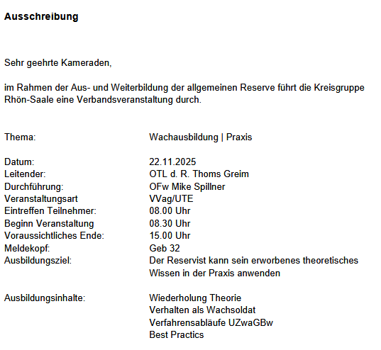 Verbandsveranstaltung / Thema: Wachausbildung | Praxis